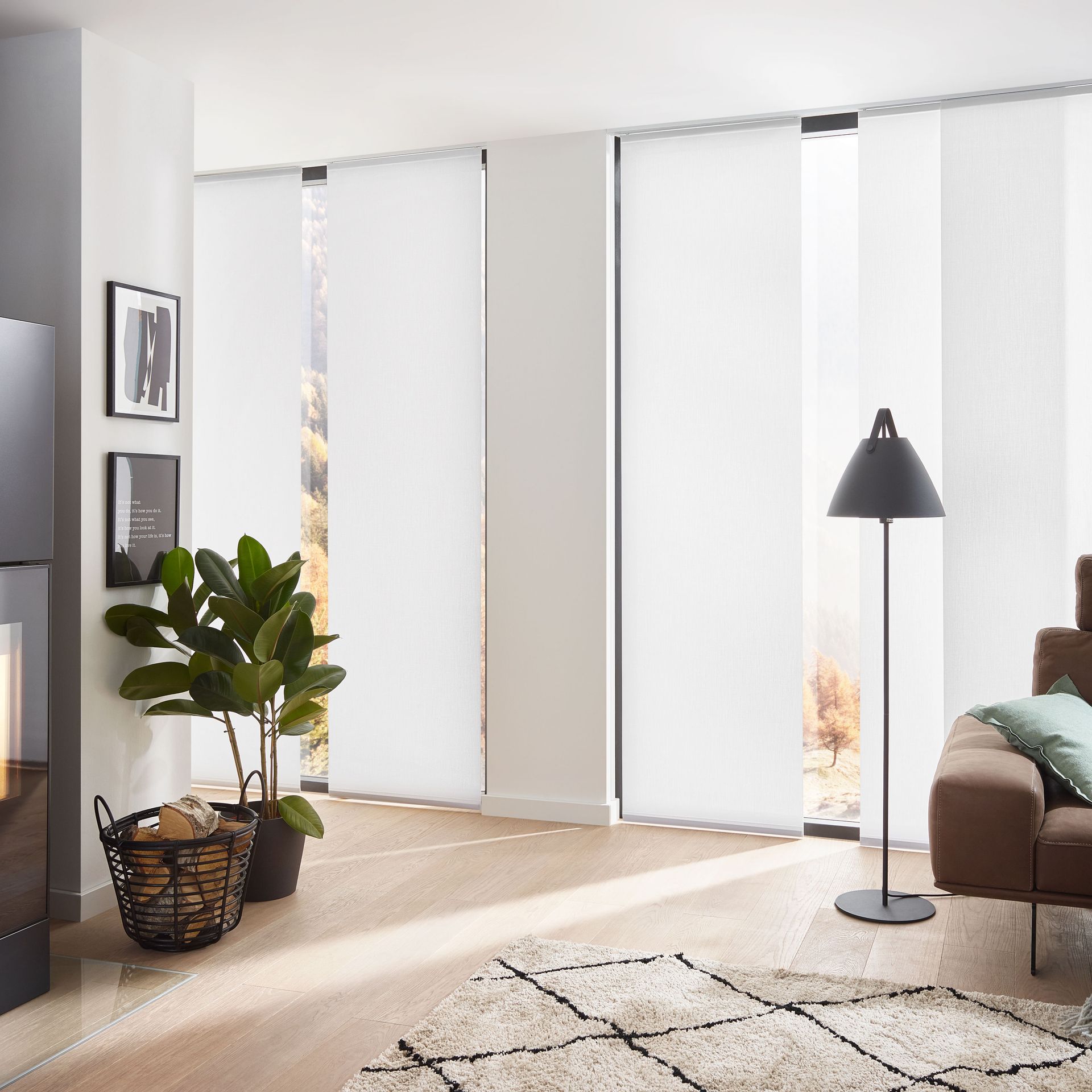 Wer die Symbiose aus puristischem Design, geraden Linien und funktionaler Beschattung für breite Fronten sucht, ist beim Flächenvorhang genau richtig. Durch die mehrläufigen Schienen können sowohl unterschiedliche Abdunkelungsstufen als auch verschiedenste Designs perfekt kombiniert und die Stoffe bzw. Behänge auch jederzeit ausgetauscht werden. In der Regel werden Flächenvorhangsysteme mittels Schleuderschiene oder Schnurzug bedient.